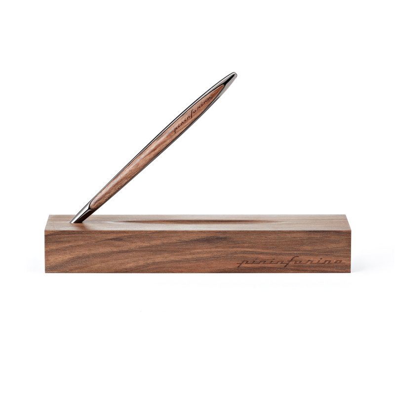 Флагманская ручка дизайнерского дома Pininfarina сочетает в себе роскошь и смелые дизайнерские решения. Pininfarina Cambiano - это объединение различных материалов, технологичность и элегантные линии. Вечная ручка имеет необычный пишущий узел в виде наконечника Ethergraf, который изготовлен из сплава металлов по запатентованной технологии. Он не содержит свинец и алюминий, производится вручную итальянскими мастерами и практически не расходуется за десятилетия использования. При соприкосновении с поверхностью бумаги, происходит химическая реакция и наконечник оставляет серебристый след, который напоминает цвет графитового карандаша, но обладает большей стойкостью. Идеально пишет на каменной бумаге. Корпус ручки выполнен из алюминия с черным глянцевым покрытием и вставками из дерева грецкого ореха. Вес ручки 39 гр, длина 16 см. Коробка выполнена из дерева грецкого ореха и одновременно является настольной подставкой для ручки.
