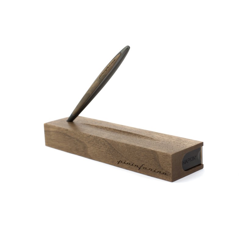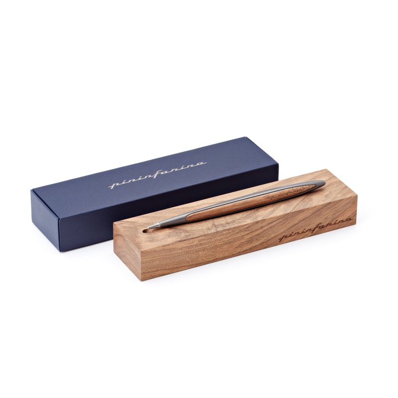 Флагманская ручка дизайнерского дома Pininfarina сочетает в себе роскошь и смелые дизайнерские решения. Pininfarina Cambiano - это объединение различных материалов, технологичность и элегантные линии. Вечная ручка имеет необычный пишущий узел в виде наконечника Ethergraf, который изготовлен из сплава металлов по запатентованной технологии. Он не содержит свинец и алюминий, производится вручную итальянскими мастерами и практически не расходуется за десятилетия использования. При соприкосновении с поверхностью бумаги, происходит химическая реакция и наконечник оставляет серебристый след, который напоминает цвет графитового карандаша, но обладает большей стойкостью. Идеально пишет на каменной бумаге. Корпус ручки выполнен из алюминия с черным матовым покрытием и вставками из дерева грецкого ореха. Вес ручки 39 гр, длина 16 см. Коробка выполнена из дерева грецкого ореха и одновременно является настольной подставкой для ручки.
