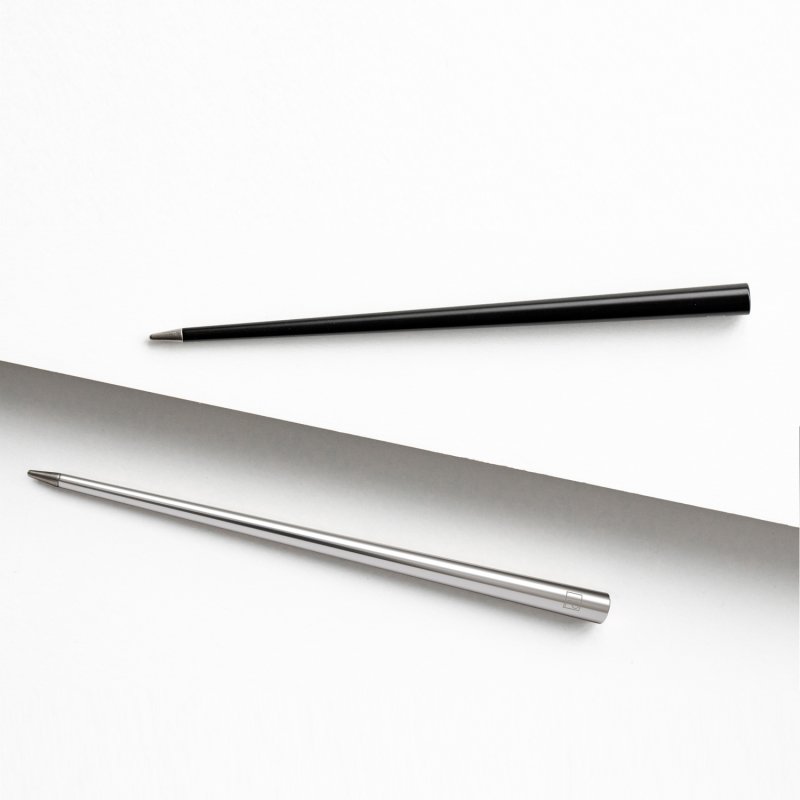 Forever Prima BLACK - яркая дизайнерская ручка удлиненной конической формы, отмеченная GranDesign Etico International Award. Черный матовый корпус из анодированного алюминия венчает наконечник Ethergraf, который изготовлен из сплава металлов по запатентованной технологии. Наконечник не содержит свинец и алюминий, производится вручную итальянскими мастерами и практически не расходуется за десятилетия использования. При соприкосновении с поверхностью бумаги, происходит химическая реакция и наконечник оставляет серебристый след, который напоминает цвет графитового карандаша, но обладает большей стойкостью. Идеально пишет на каменной бумаге. Вес ручки всего 20 гр при длине 18 см. При гравировке вскрывается белым цветом. Ручка поставляется в черном картонном тубусе диаметром 4,5 см, длиной 19 см.