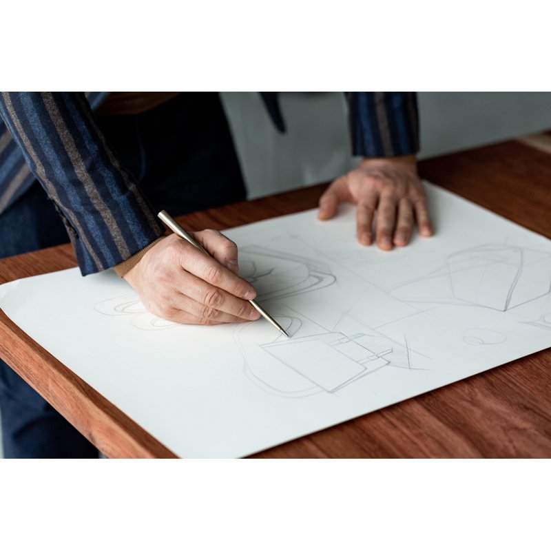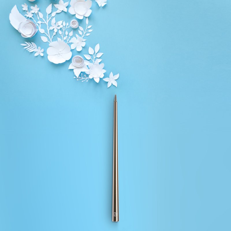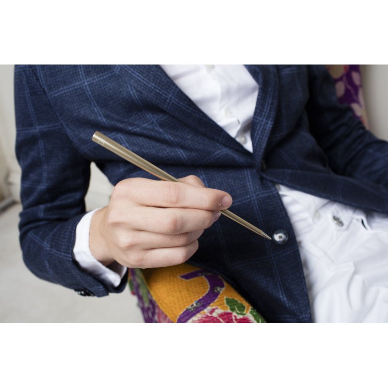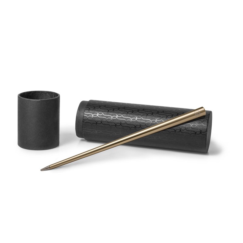 Forever Prima GOLD - яркая дизайнерская ручка удлиненной конической формы, отмеченная GranDesign Etico International Award. Золотистый корпус из анодированного алюминия венчает наконечник Ethergraf, который изготовлен из сплава металлов по запатентованной технологии. Наконечник не содержит свинец и алюминий, производится вручную итальянскими мастерами и практически не расходуется за десятилетия использования. При соприкосновении с поверхностью бумаги, происходит химическая реакция и наконечник оставляет серебристый след, который напоминает цвет графитового карандаша, но обладает большей стойкостью. Идеально пишет на каменной бумаге. Вес ручки всего 20 гр при длине 18 см. При гравировке вскрывается белым цветом. Ручка поставляется в черном картонном тубусе диаметром 4,5 см, длиной 19 см.