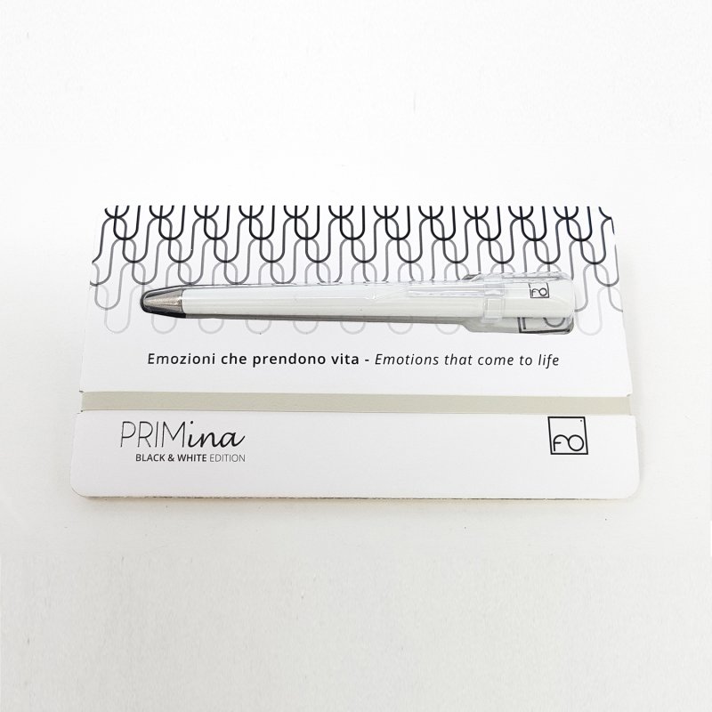 Forever Primina - младшая сестра дизайнерской ручки Forever Prima, более эмоциональная, яркая и молодежная. Primina представлена в девяти ярких цветах, которые символизируют девять эмоций. Каждый оттенок несет свое послание, превращая PRIMINA в идеальный инструмент для выражения индивидуальности или способный стать подарком со смыслом. Белая воздушная мини-ручка длиной 11,3 см и весом 17 гр оснащена фирменным наконечником Ethergraf, который изготовлен из сплава металлов по запатентованной технологии. Наконечник не содержит свинец и алюминий, производится вручную итальянскими мастерами и практически не расходуется за десятилетия использования. При соприкосновении с поверхностью бумаги, происходит химическая реакция и наконечник оставляет серебристый след, который напоминает цвет графитового карандаша, но обладает большей стойкостью. Идеально пишет на каменной бумаге.
