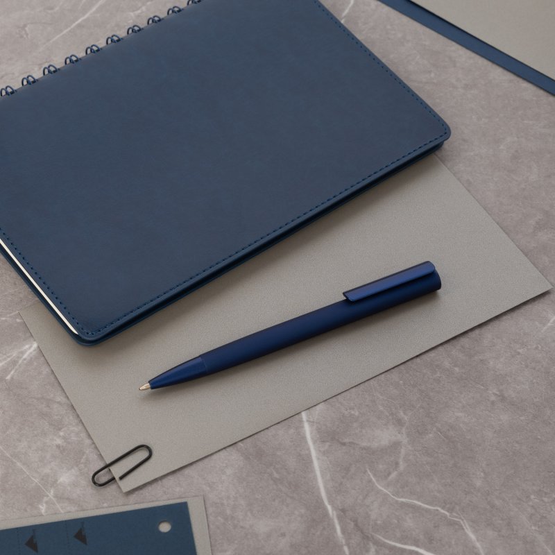 Минималистичный дизайн корпуса эффектно дополнен покрытием Soft Touch metallic, которое удачно гармонирует с металлик деталями. Стержень легко выдвигается благодаря нажимному механизму клипа-слайдера, ручка не скользит в руке и комфортно ощущается при письме за счет покрытия. Плавно пишущие синие чернила Documental (Германия) обеспечивают качественное и мягкое письмо.