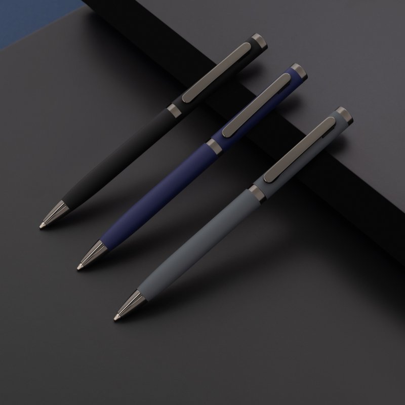 Классическое матовое Soft Touch покрытие корпуса обрамляется качественной хромированной отделкой, которая добавляет ручке изящности. Стержень легко выдвигается благодаря поворотному механизму, ручка не скользит в руке и комфортно ощущается при письме за счет покрытия. Плавно пишущие синие чернила Documental (Германия) обеспечивают качественное и мягкое письмо.