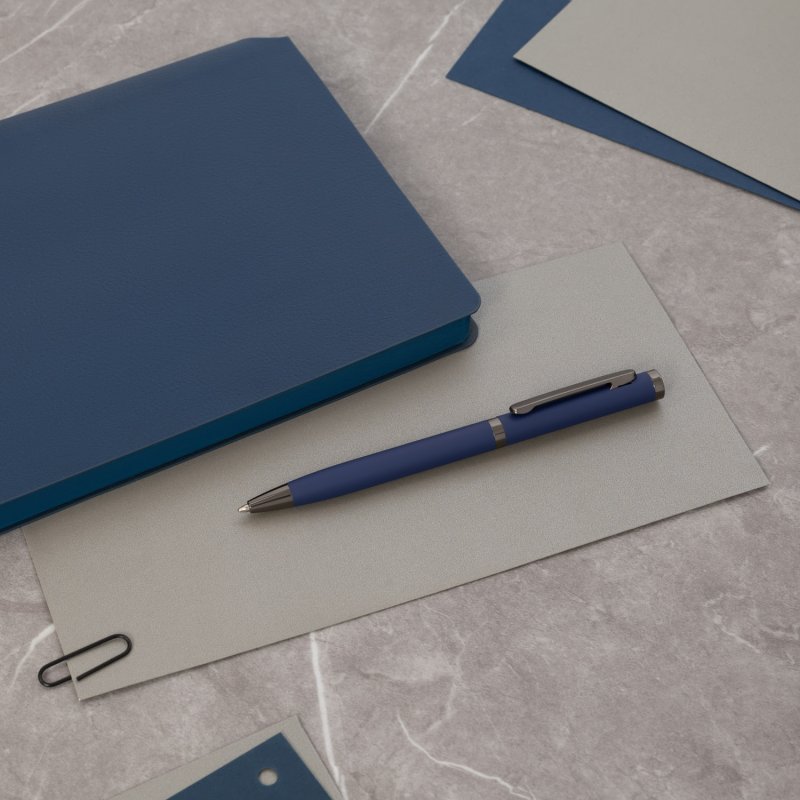 Классическое матовое Soft Touch покрытие корпуса обрамляется качественной хромированной отделкой, которая добавляет ручке изящности. Стержень легко выдвигается благодаря поворотному механизму, ручка не скользит в руке и комфортно ощущается при письме за счет покрытия. Плавно пишущие синие чернила Documental (Германия) обеспечивают качественное и мягкое письмо.