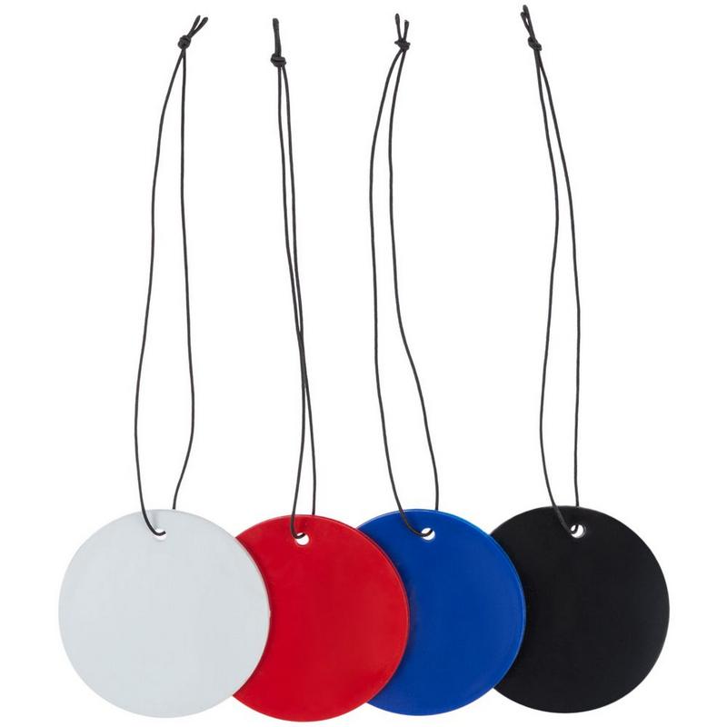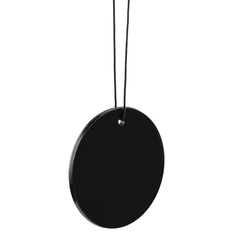 Круглая пластинка из ароматизированного пластика на подвесе-резинке.