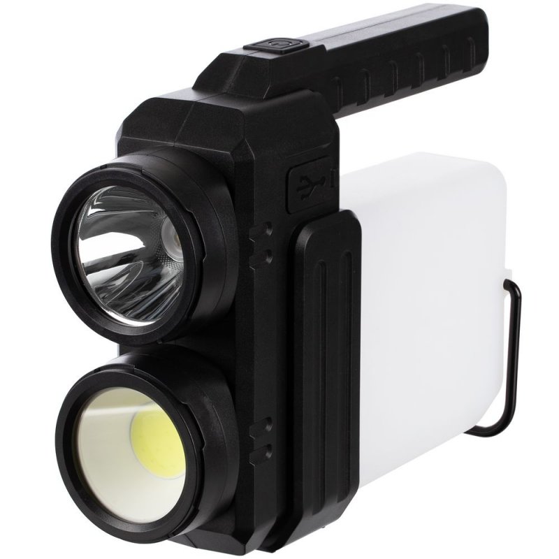 - Рассеянный луч света — светодиод COB мощностью 400 лм, дальность светового луча до 25 м, время работы до 4 ч