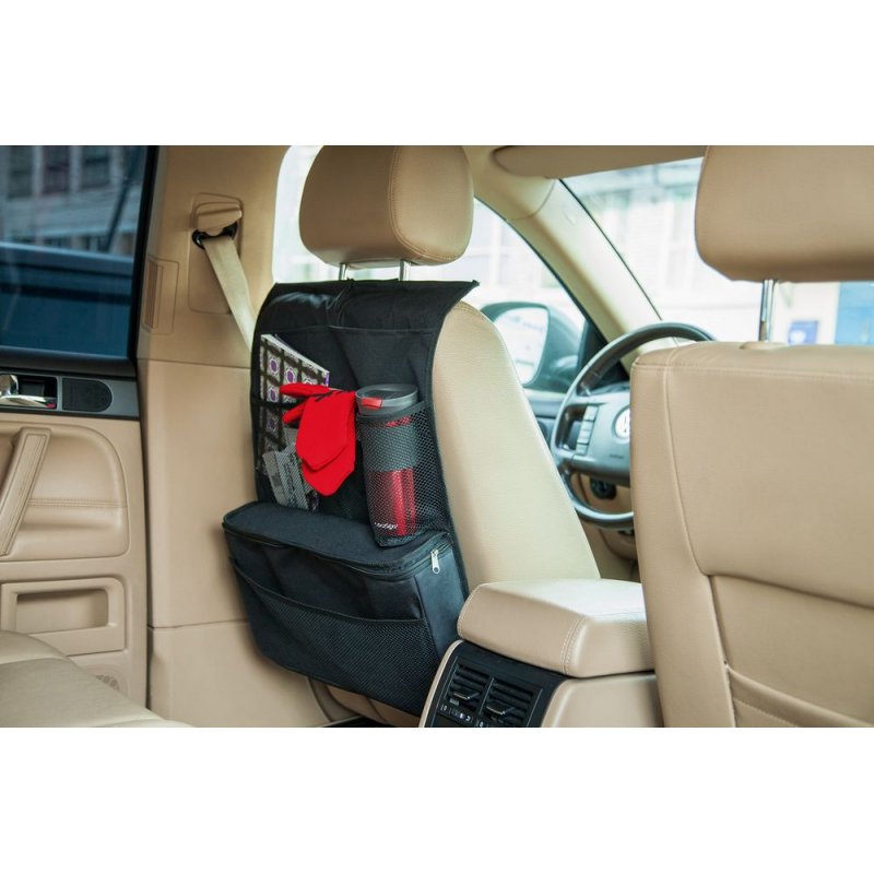Органайзер защищает спинку сидения от загрязнений и позволяет компактно разложить все необходимые вещи. Найдется место для журналов, ручек и карандашей, очков, гаджетов, бутылки с водой и других необходимых в дороге мелочей. Вместительное термоотделение сохранит напитки или йогурты холодными, а бутерброды — горячими.