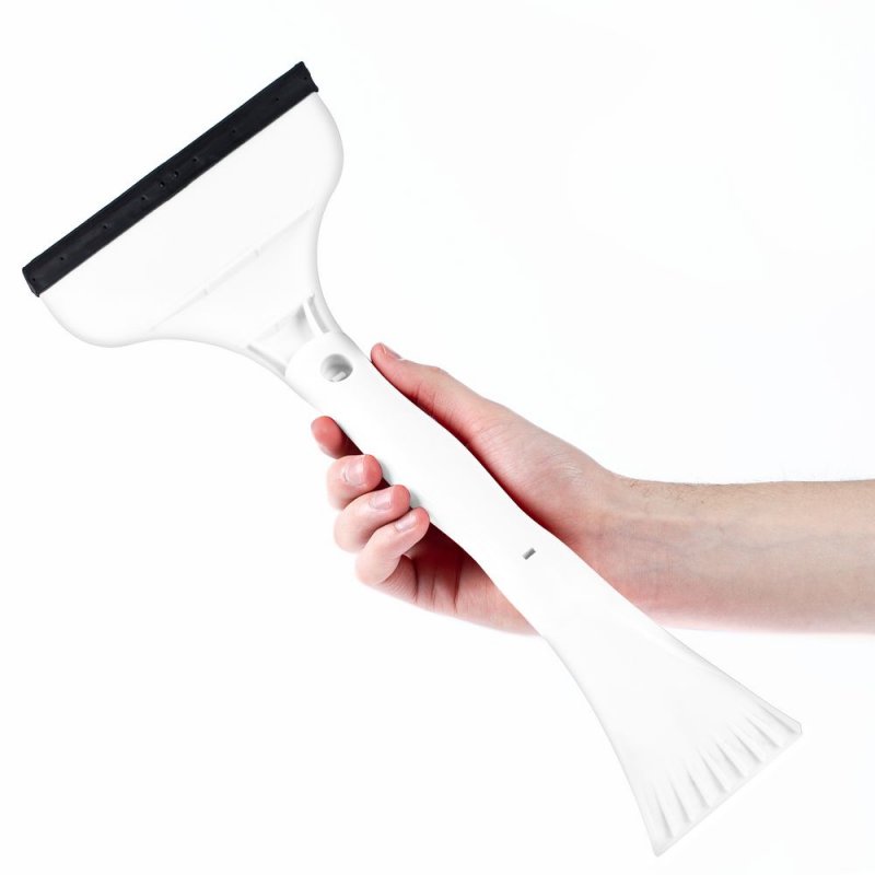 Скребок Water Low состоит из двух половинок: скребка с усиленной кромкой и зубьями-ледорубами и водосгона с упругой резиновой накладкой. Части скребка можно разъединить, чтобы разделить уборку снега с пассажиром или работать двумя руками.