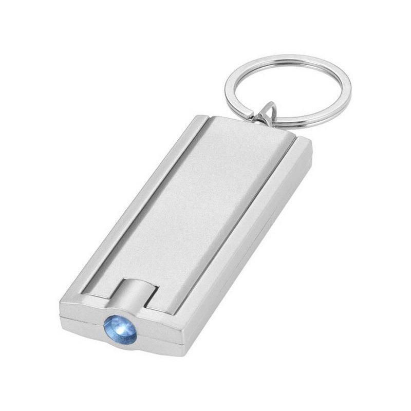 Брелок с ярким светодиодным фонариком с кнопкой. Металлическое кольцо для ключей. Батарейки включены в комплект. АБС-пластик.
