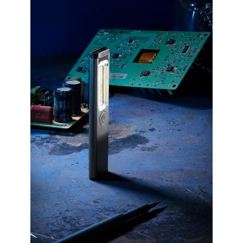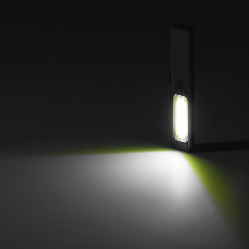 Плавная регулировка яркости осуществляется удержанием центральной кнопки при включенном устройстве — это позволяет точно адаптировать освещение под рабочие условия. Магнит в основании фонарика дает возможность зафиксировать фонарик на металлической поверхности и освободить руки для выполнения задач.