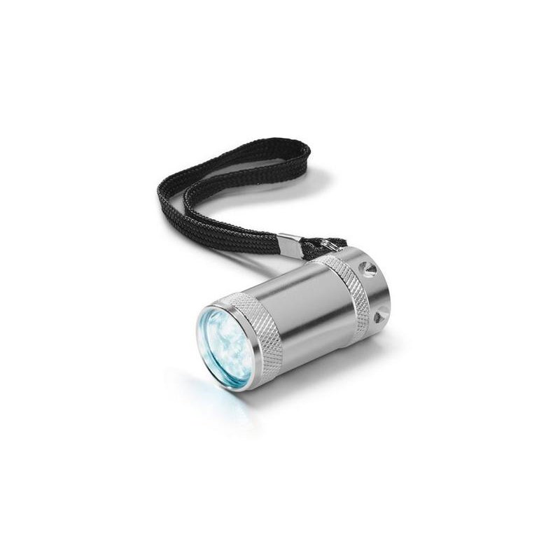 SADO. Фонарь из алюминия, Серебряный. Фонарь из алюминия с 6 лампочками LED. Включает 2 батарейки CR2032. Вид нанесения, рекомендуемый поставщиком: гравировка