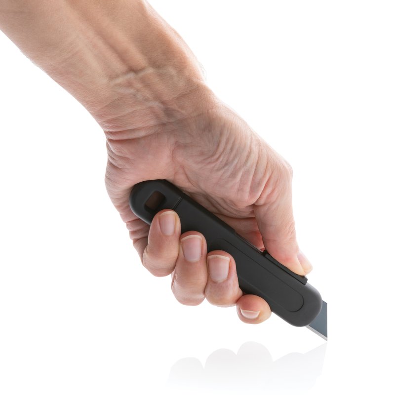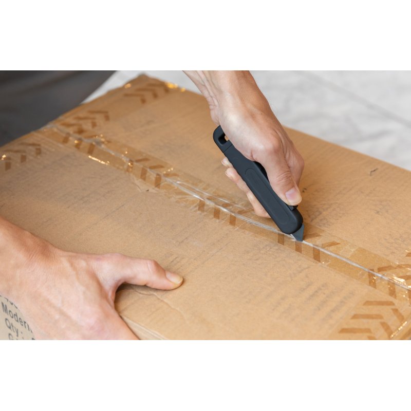 Безопасный строительный нож для открывания посылок со сменным лезвием. Корпус выполнен из ABS-пластика, а лезвие из стали SK4 (18 мм). Лезвие автоматически втягивается, если не зажимать кнопку.