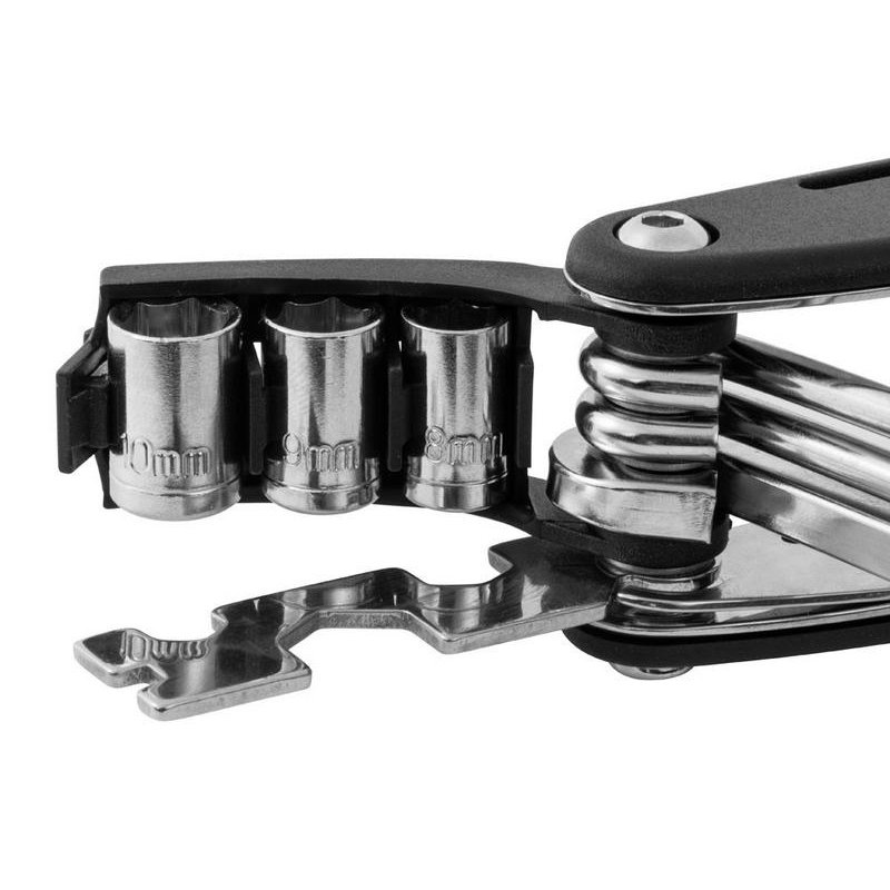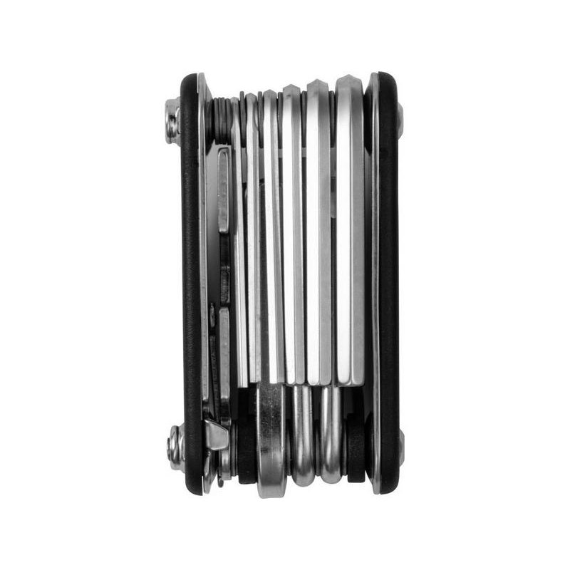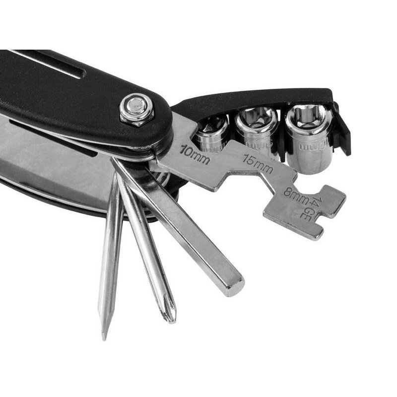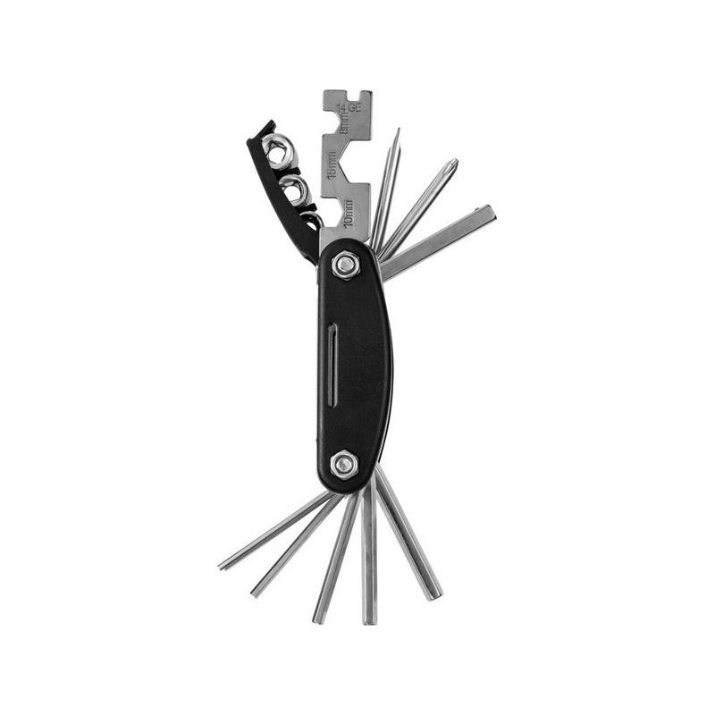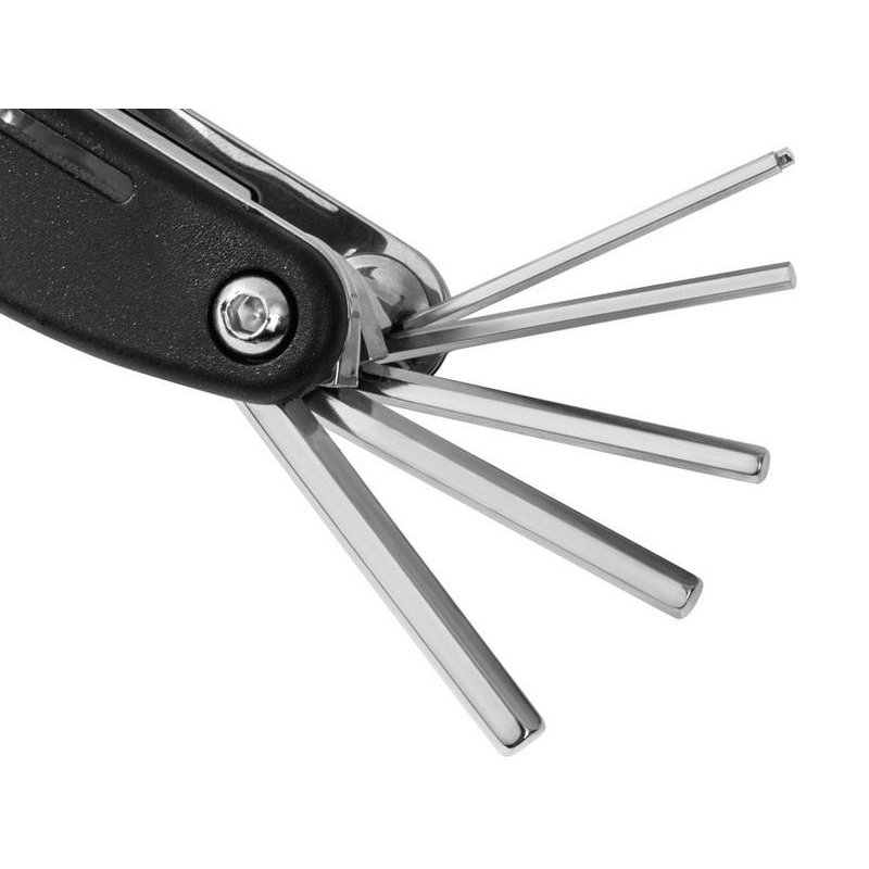 Многофункциональный инструмент от Roq сочетает в себе целых 16 функций: 6 шестигранных ключей (№ 2, № 2,5, № 3, № 4, № 5, № 6), 4 ключа (8 мм, 10 мм, 15 мм, 14GE), адаптер, крестообразную отвертку, шлицевую отвертку и 3 насадки (№ 8, № 9, № 10).