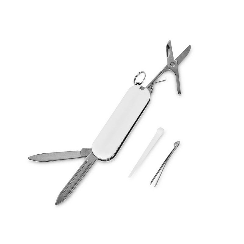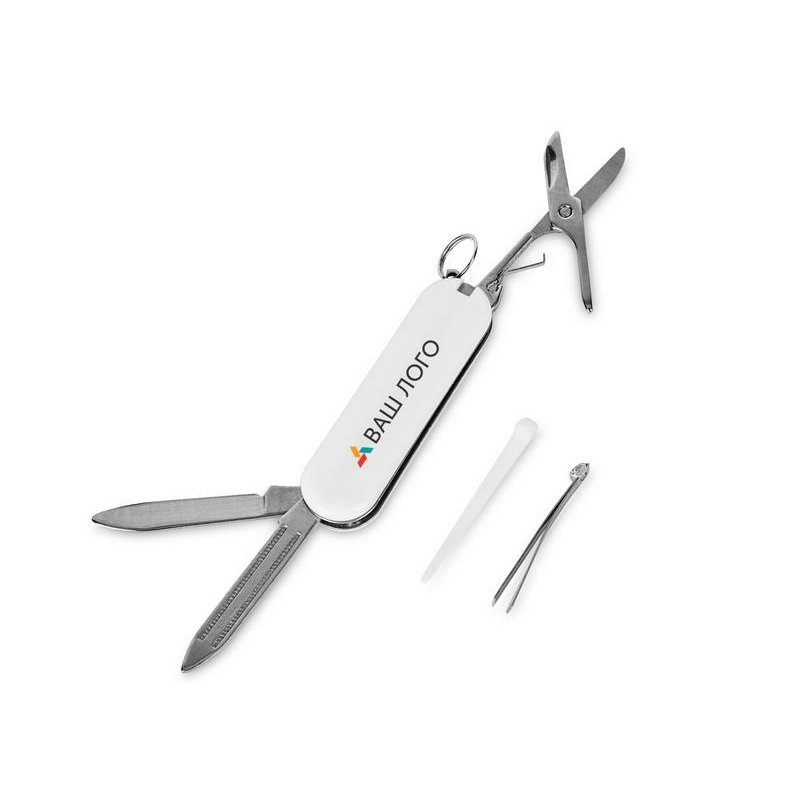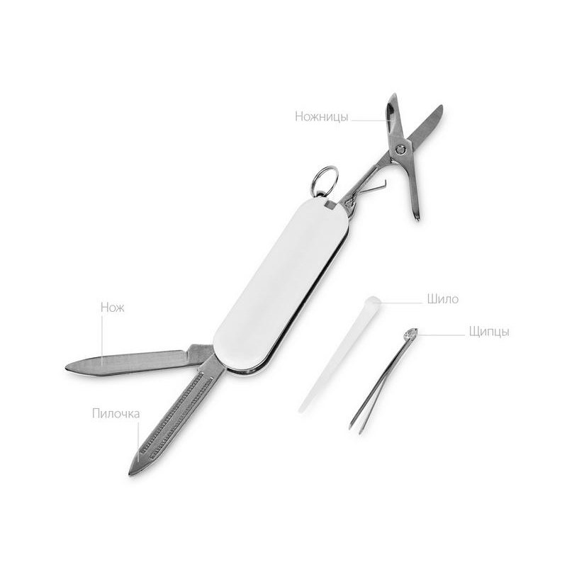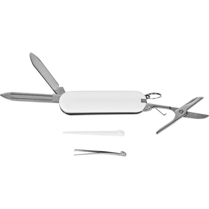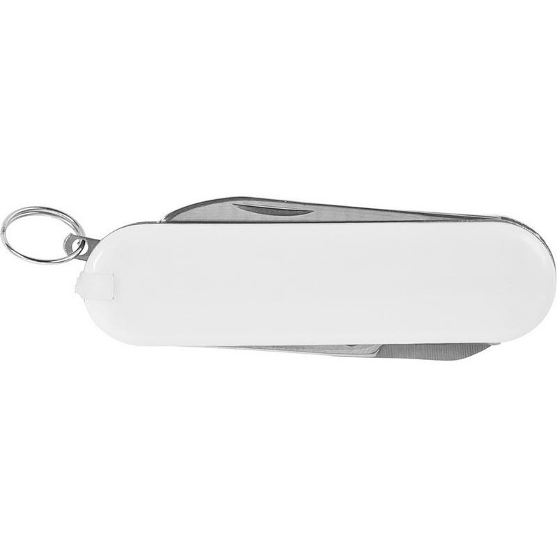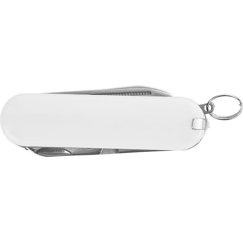 Складной нож в пластиковом глянцевом корпусе. Можно удобно прикрепить на ключницу. В комплект входят: