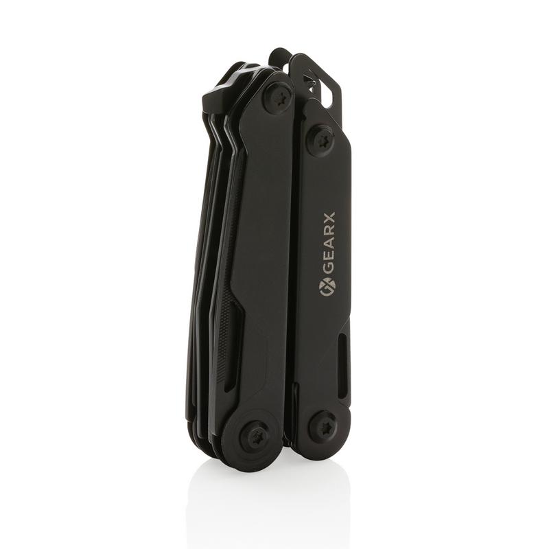 Сила и мощь — эти слова лучше всего описывают инструмент бренда Gear X. Это самый универсальный и надежный инструмент для ежедневной работы как дома, так и на природе. Стильный черный корпус из алюминия идеально сочетается с инструментами из высококачественной нержавеющей стали 420 черного цвета. Инструменты Gear X рассчитаны на долгий срок службы. 13 функций: нож (с замком), напильник, пила, большая шлицевая отвертка (с замком), отвертка Philips, шлицевая отвертка, пассатижи, стандартные плоскогубцы, кусачки, открывалка для бутылок, отвертка, нож для автомобильного ремня безопасности, нож для коробок. Уровень твердости инструментов 40-45 HRC. Мультитул с пассатижами Gear X будет всегда под рукой и в любой момент готов к использованию. Поставляется в стильной подарочной коробке.