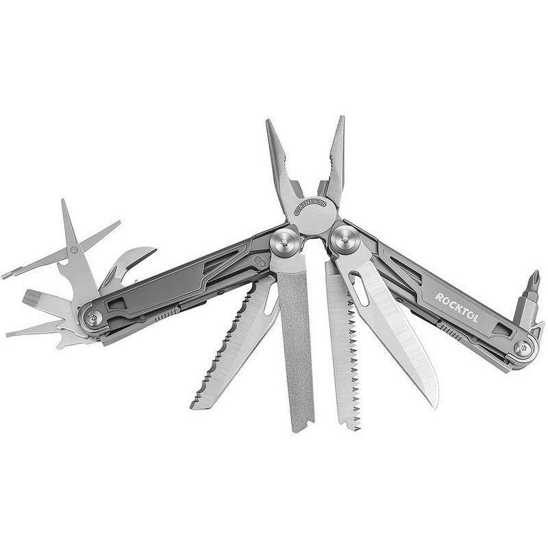 Многофункциональный инструмент Rocktol 19 в 1 с рукояткой из титана и сверхострым ножом из нержавеющей стали 7Cr17 твердостью до HRC 58. Они идеально подходят для тяжелых работ и приключений на свежем воздухе. Каждый инструмент оснащен предохранительным механизмом блокировки для дополнительной безопасности, а прочная конструкция из нержавеющей стали гарантирует его долговечность. Кроме того, компактная и легкая конструкция, а также прочный нейлоновый чехол позволяют легко носить его с собой, куда бы вы ни отправились. Не соглашайтесь ни на что, кроме надежности - выбирайте этот первоклассный мультитул для повседневных задач или для следующего приключения на свежем воздухе!