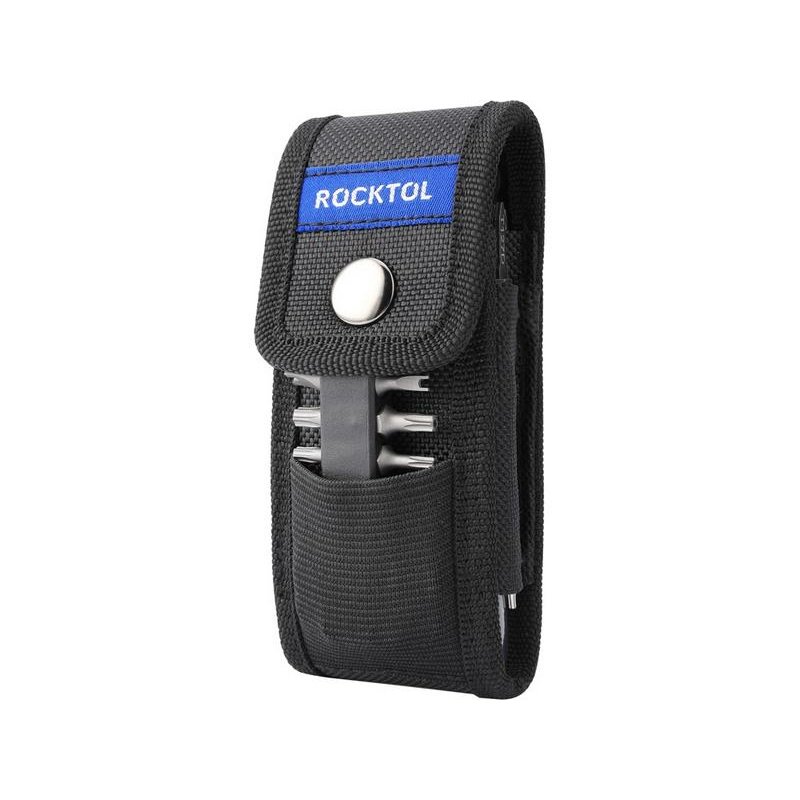Набор инструментов оснащен прочным нейлоновым чехлом с застежкой на пуговицу, имеет передний карман для хранения бит и боковые карманы для хранения пильных полотен. Сзади также имеется петля для ремня шириной 2,2 дюйма, позволяющая носить универсальный мультитул где угодно. Это удобный инструмент для хранения в машине или отличный компаньон для выживания на природе, кемпинга, строительства и самостоятельных проектов.