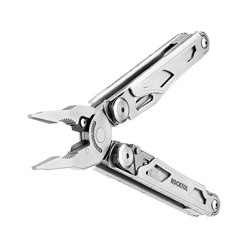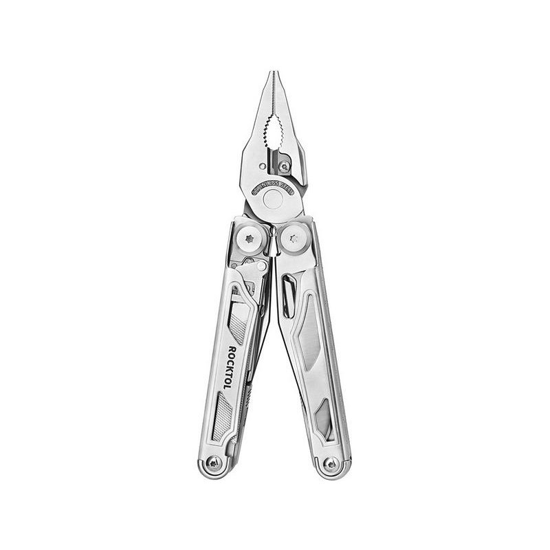 Этот многофункциональный инструмент включает в себя 29 инструментов, включая обычные плоскогубцы, плоскогубцы с игольчатым наконечником, сменные кусачки, устройства для снятия проволоки, прямые и зазубренные ножи, сменную пилу по дереву, напильник по дереву / металлу, большие пружинящие ножницы, шило, открывалки для бутылок и банок, отвертки с прорезями и отвертки для стаканов, сменную насадку с 8 наборами двухсторонних бит (SP8 + SP4, TT25 + TT20 , TT15+TT10, SL6 +SL5, SL4 +SL3, H5 +H4, H3 +H2.5, PH2+PH1). Все инструменты оснащены предохранителями для уверенного использования.