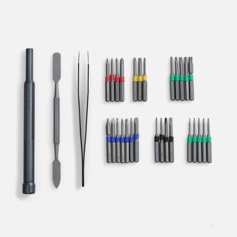В набор бит для точных работ входят насадки, необходимые для ремонта смартфонов, планшетов, ноутбуков и ПК, включая iPhone, iPad, MacBook Air и MacBook Pro, а также игровые консоли и контроллеры от Nintendo, PlayStation или XBox. Входящий в набор пинцет позволяет более уверенно манипулировать деталями электроники, а спуджер позволяет без особых усилий вскрыть клавиатуру ноутбука или подцепить глубоко расположенную батарейку.