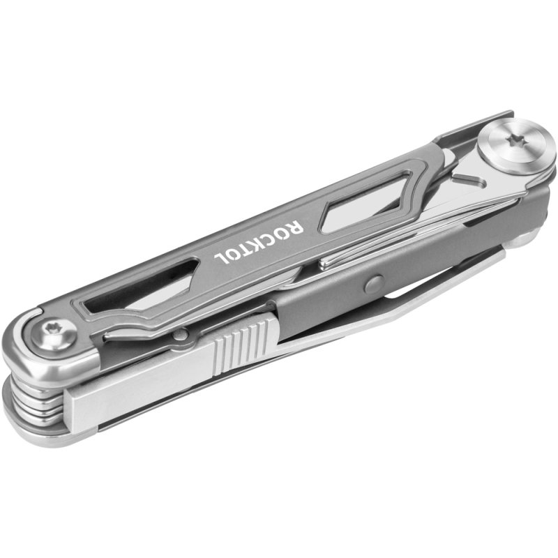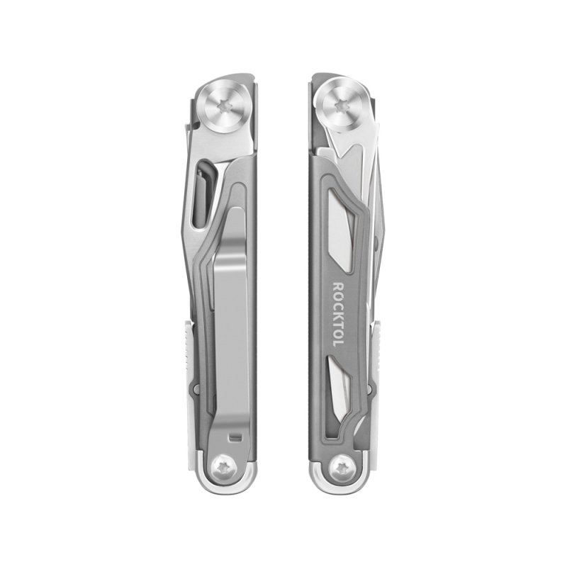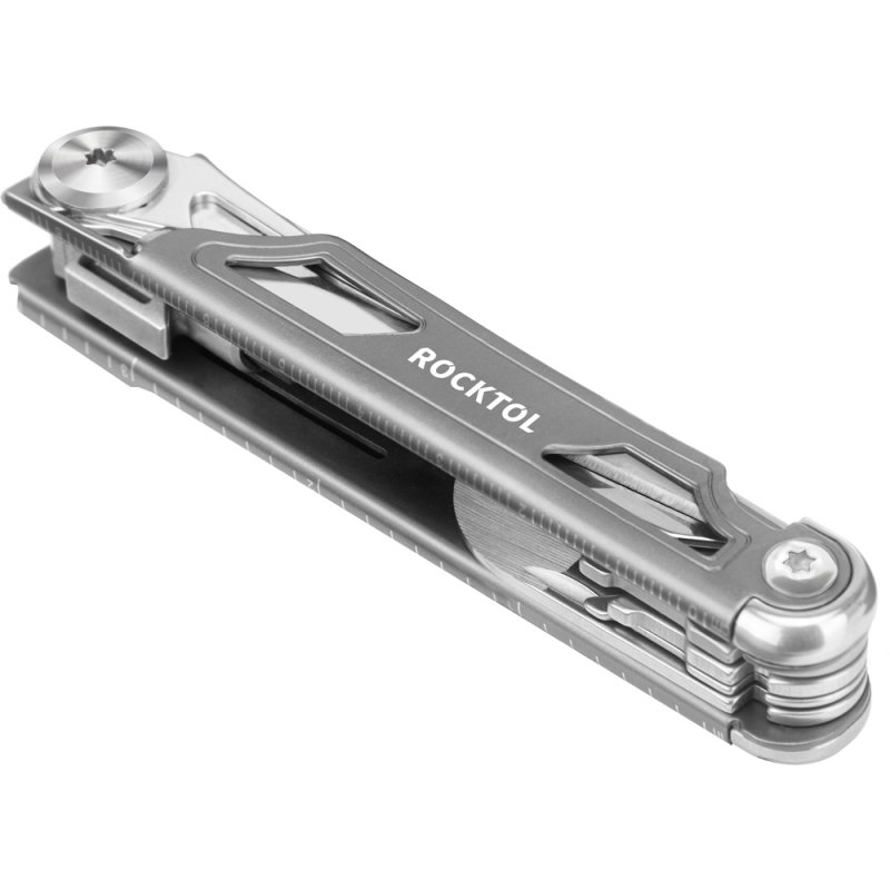 Складной карманный нож Rocktol оснащен 12 функциями все в одном, включая лезвие ножа длиной 2,68 дюйма, большие ножницы, отвертки Phillips № 1 и 3/16 дюйма, отвертки с прорезями и для стаканов, открывалки для банок и бутылок, устройство для снятия проволоки, шило, линейки и встроенный зажим для кармана.
