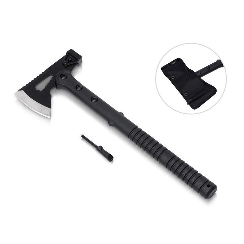 Топор 4-в-1 Lumber бренда roq выполнен из нержавеющей стали 420 марки. Товар поставляется в нейлоновом чехле. В чехле есть специальный кармашек с огнивом. Чтобы высечь искры для разжигания костра, возьмите огниво за рукоять в одну руку и проведите лезвием по стержню огнива под углом в 90 градусов в направлении от себя. В целях безопасности не высекайте искры в помещении или около легко воспламеняемых материалов. Поставляется с чехлом в картонной коробке.