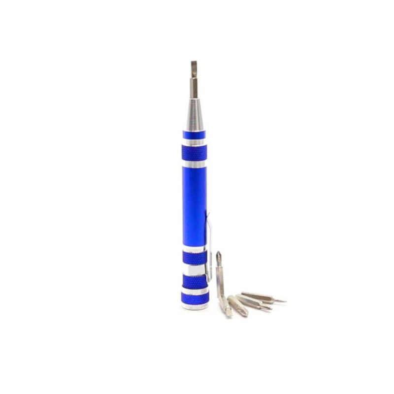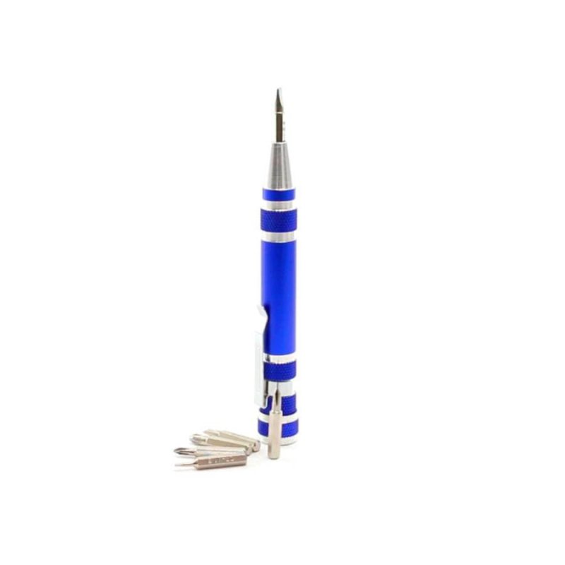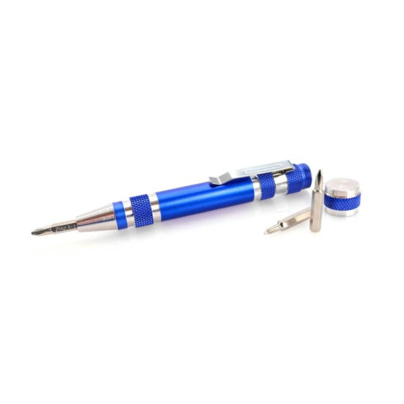 Мультитул с 6 аксессуарам. С нескользящим корпусом и металлическим зажимом.Включает в себя 6 плоских и крестообразных отверток.
