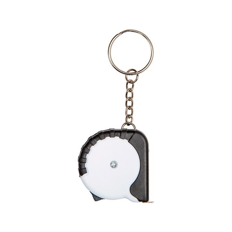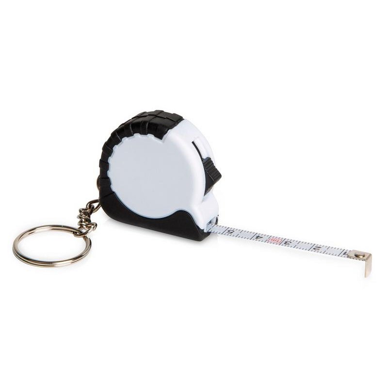 Рулетка длиной 1 м с возвратной пружиной и стопором со шкалой в сантиметрах и дюймах. Кнопка для фиксации ленты.