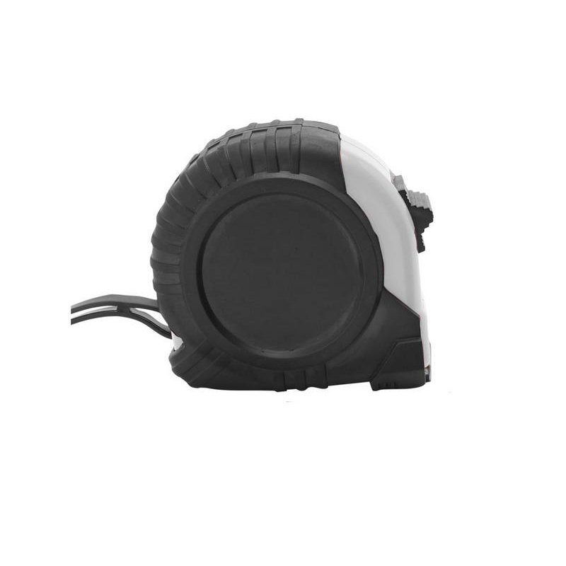 5-метровая рулетка с фиксирующим механизмом. Цветной прорезиненный корпус с резиновым чехлом, металлический зажим и ремешок для переноски.