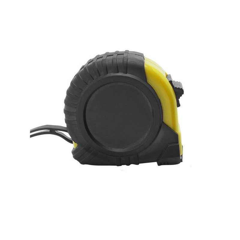 5-метровая рулетка с фиксирующим механизмом. Цветной прорезиненный корпус с резиновым чехлом, металлический зажим и ремешок для переноски.