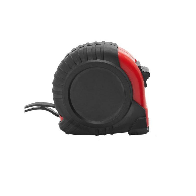 5-метровая рулетка с фиксирующим механизмом. Цветной прорезиненный корпус с резиновым чехлом, металлический зажим и ремешок для переноски.