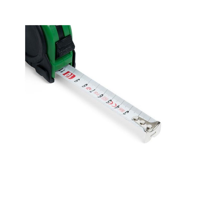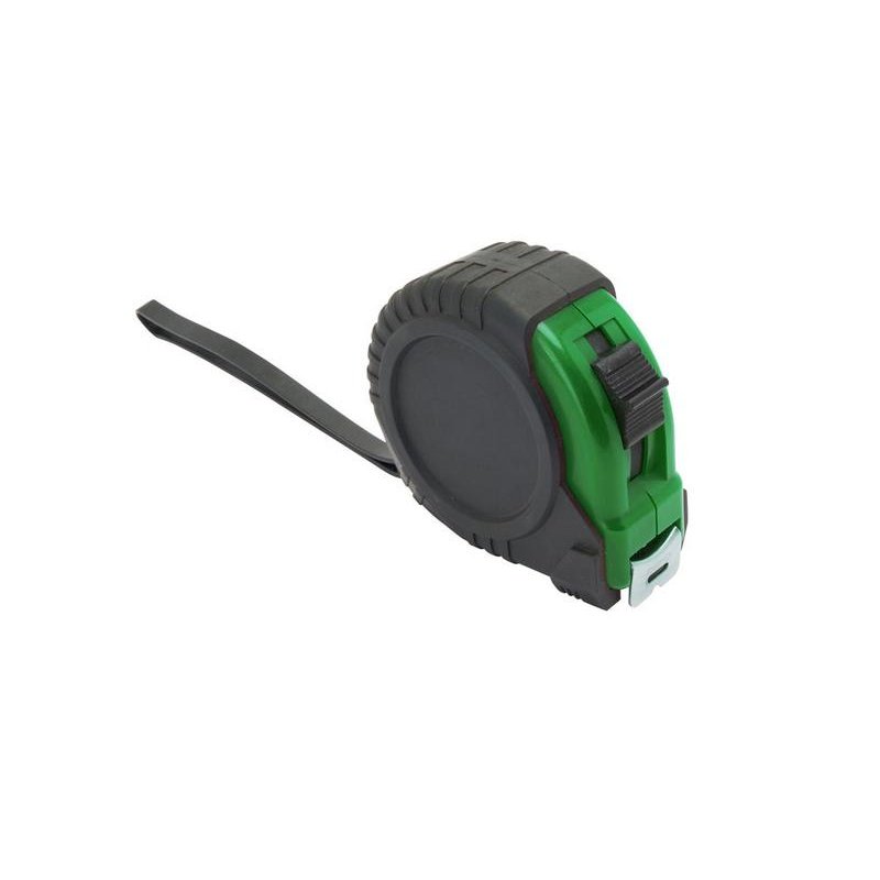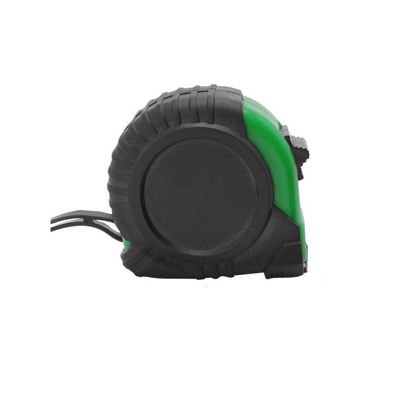5-метровая рулетка с фиксирующим механизмом. Цветной прорезиненный корпус с резиновым чехлом, металлический зажим и ремешок для переноски.