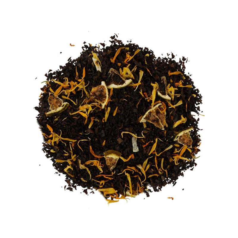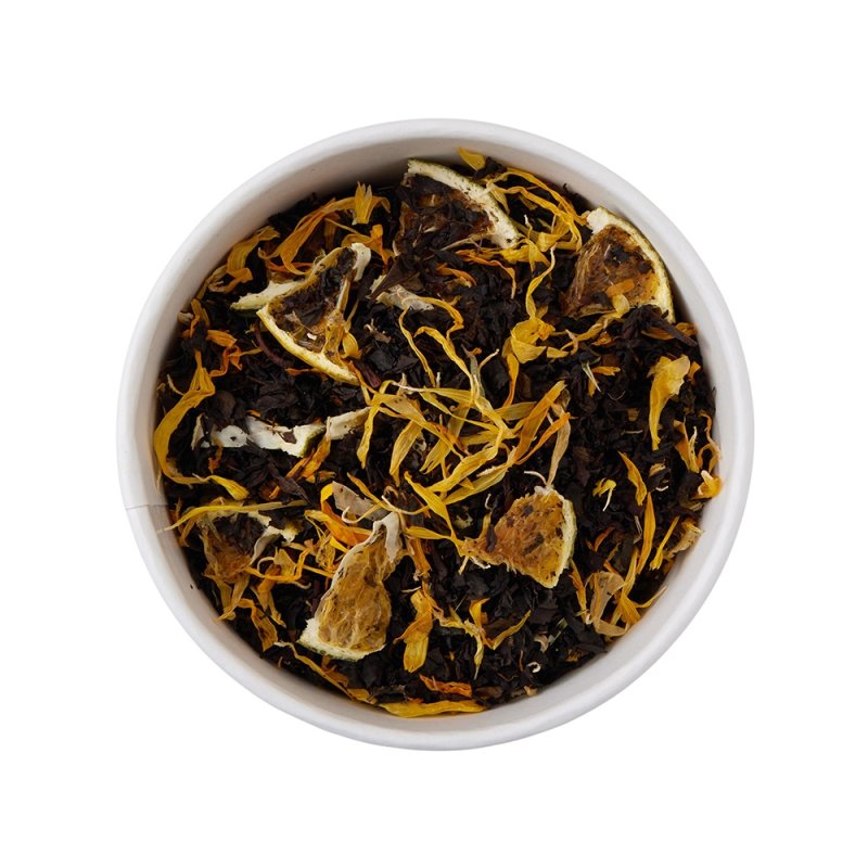 - Состав:черный чай, лепестки календулы, слайсы мандарина, ароматизатор натуральный Глинтвейн, ароматизатор натуральный Мандарин
