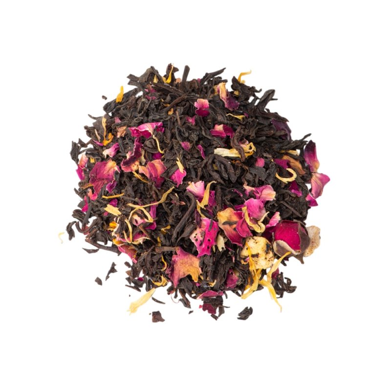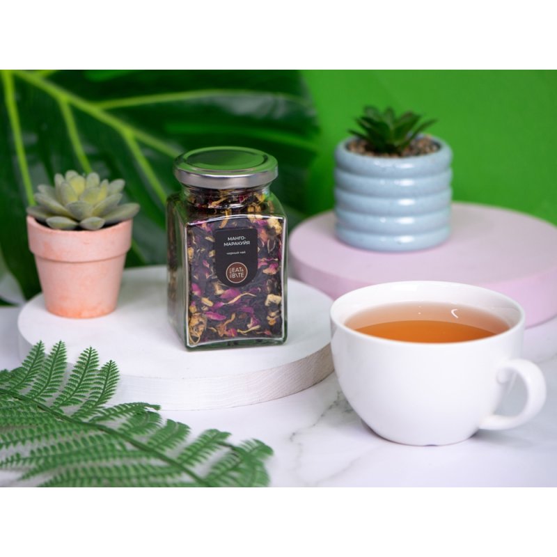 - состав: купаж на основе крупнолистового черного индийского чая, кусочки манго сублимированные, бутоны роз, лепестки роз, лепестки календулы, натуральный ароматизатор;