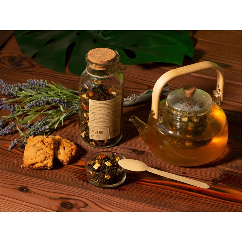 - Состав:чай зелёный байховый крупнолистовой, кусочки ананаса, сок ананаса, яблоко сушеное, облепиха сублимированная, ароматизатор натуральный Яблоко