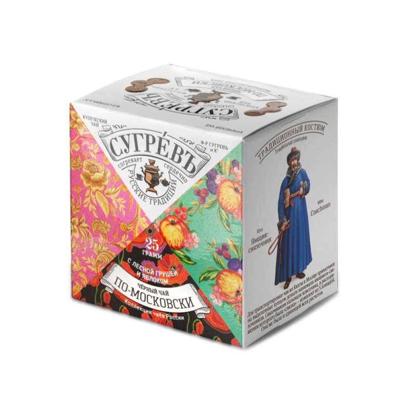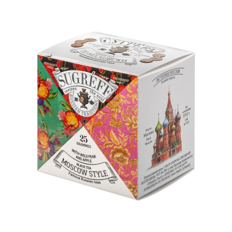 Чай ПО-МОСКОВСКИ сделан на основе купажа чёрного байхового чая с добавлением самых разных фруктов и ягод. Именно такой вкусный чайный компот, когда в большую кастрюлю с чаем в изобилии добавляются фрукты и ягоды, принято варить в цыганских общинах.