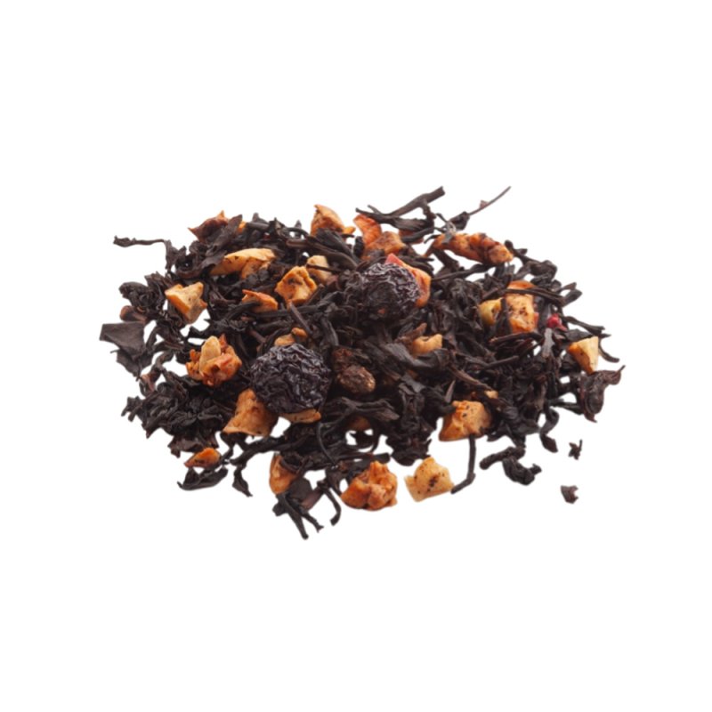 - Состав:чай черный, яблоко, вишня сушеная, плоды шиповника, кусочки сублимированной малины