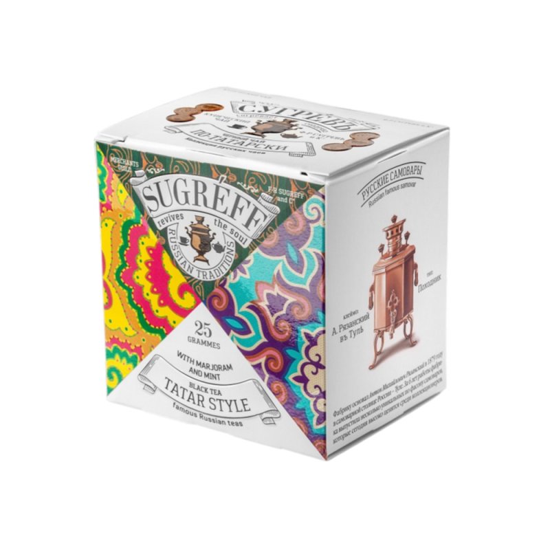 Чай ПО-ТАТАРСКИ сделан на основе купажа отборного цейлонского чая Pekoe c добавлением натуральных популярных трав Татарстана. Брусничный лист придаёт напитку лёгкую терпкость, а мята с душицей добавляют аромат и свежесть. При желании в этот чай можно добавить молоко, чтобы приблизиться к традициям татарского чаепития.