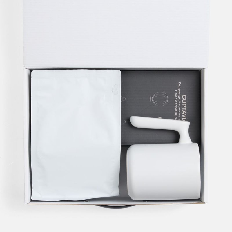 - Размеры:вспениватель: 11х4,7х23,3 см; кружка: диаметр 8 см, ширина с ручкой 11,2 см, высота 10,2 см; пачка кофе: 13х4,5х18,5 см; коробка: 26,3x36,6x10 см