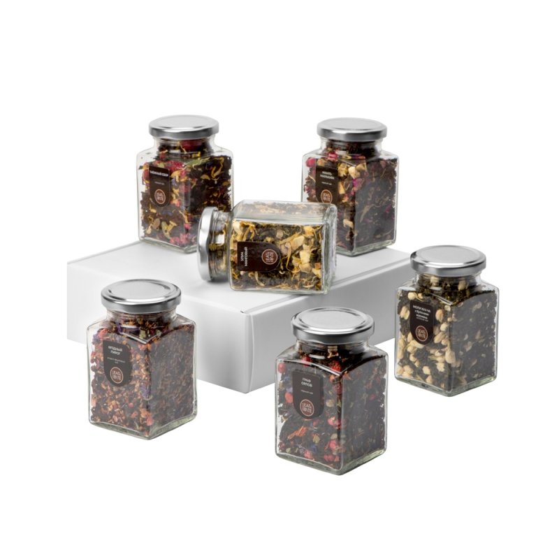 - Комплектность:чай манго-маракуйя черный, таежный сбор черный, манговый улун черный, моли хуа с бутонами жасмина зеленый, ягодный пирог травяной, граф Орлов черный