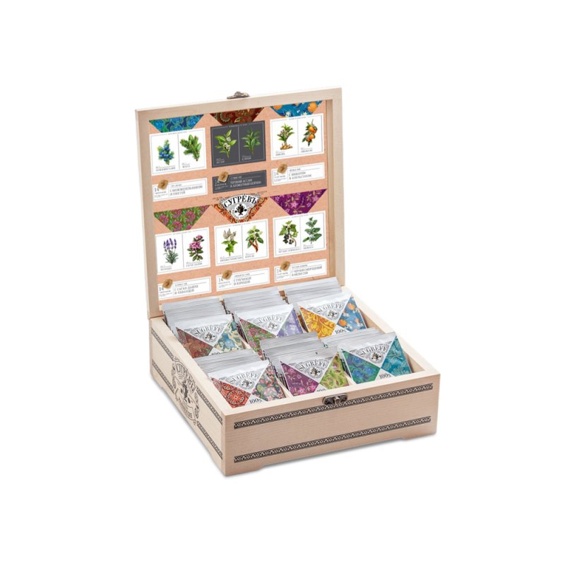 Набор многофункционален. Шкатулка с пакетиками будет эффектным и функциональным украшением вашей кухни или гостиной. В качестве чайного мини-дисплея она удобна для использования в офисе. Кроме того, набор является прекрасным подарком.