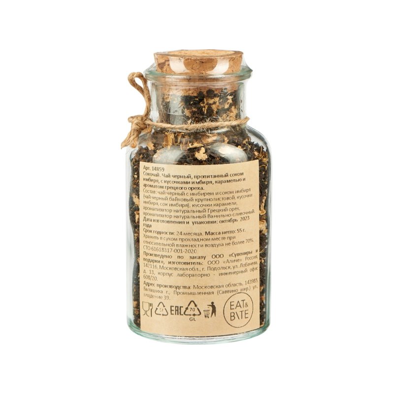 - Состав:чай черный байховый крупнолистовой, кусочки имбиря, сок имбиря, кусочки карамели, ароматизаторы натуральные Грецкий орех и Ванильно-сливочный