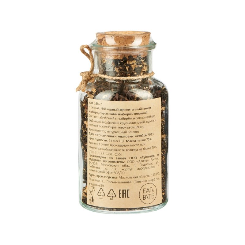 - Состав:чай чёрный байховый крупнолистовой, кусочки имбиря, сок имбиря, клюква сушёная, ароматизатор натуральный Клюква