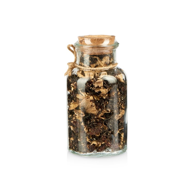 Состав: чай чёрный с имбирём и соком имбиря (чай чёрный байховый крупнолистовой, кусочки имбиря, сок имбиря), клюква сушёная, ароматизатор натуральный Клюква.
