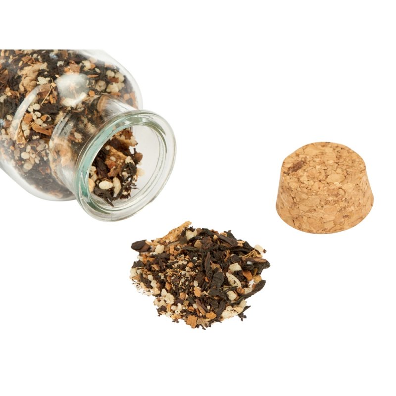 Состав: чай чёрный с имбирём и соком имбиря (чай чёрный байховый крупнолистовой, кусочки имбиря, сок имбиря), медовые гранулы, корица дроблёная.
