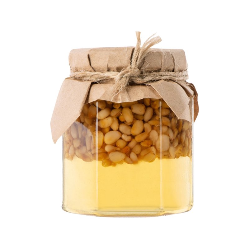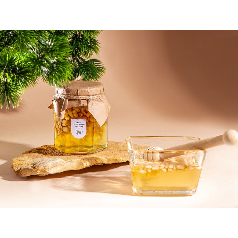 - Состав:мед акации/разнотравье, ядро кедрового ореха