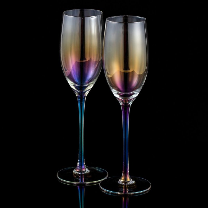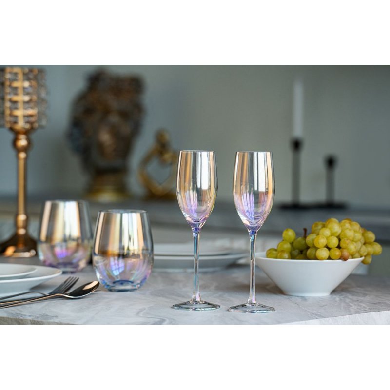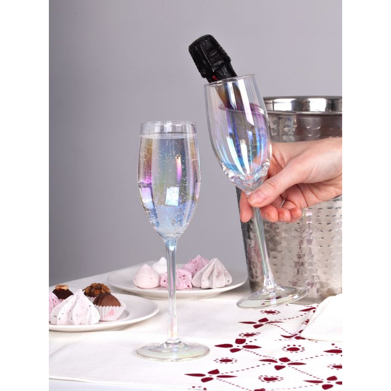 Бокалы для шампанского с перламутровым напылением Perola привлекают внимание своим изысканным дизайном. Такое бокалы станут ярким дополнением сервировки стола. Набор упакован в стильную подарочную упаковку, которая выгодно подчеркивает цвет стекла.