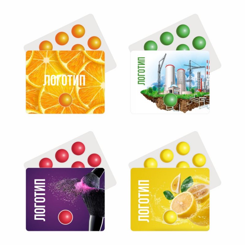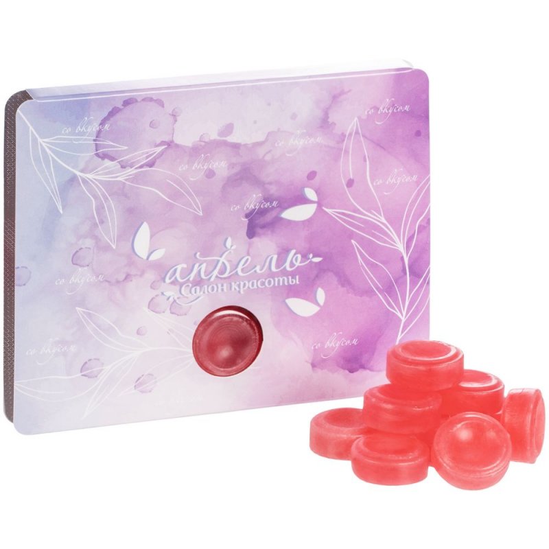 Маленький сувенир, который подарит яркое настроение, — набор из 10 леденцов в блистере, упакованный в шубер с вырубным окном.