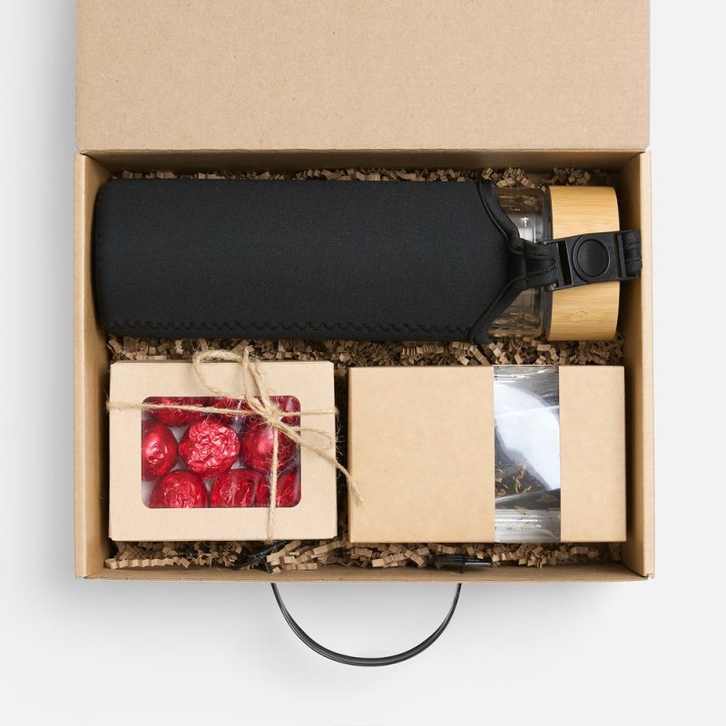 - Материал:бутылка - боросиликатное стекло, нержавеющая сталь, бамбук, неопрен; коробка - картон, пластик