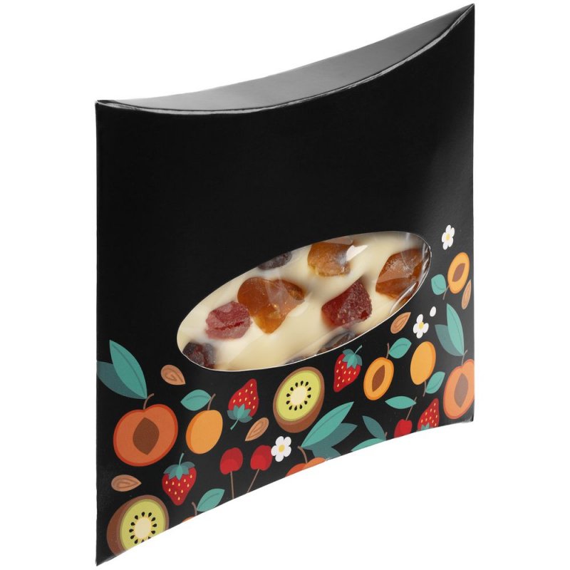 Состав: масло какао, сухое молоко, сахар, эмульгатор (соевый лецитин), экстракт ванили, сушеная клубника, сушеный персик.