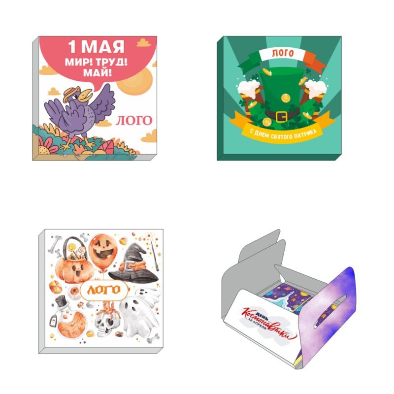 Набор из четырех плиток упакован в небольшую коробку в виде конверта.
